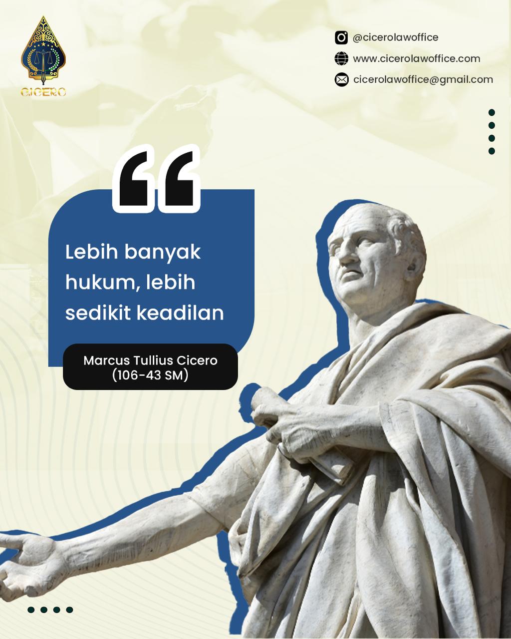 Marcus Tullius Cicero adalah orator, pengacara, dan filsuf Romawi yang menggabungkan pemikiran Yunani dengan tradisi Romawi. Gagasannya tentang etika, hukum, dan politik tetap relevan hingga kini. Tulisan ini menyajikan kutipan-kutipan penting yang mencerminkan warisan intelektualnya yang abadi.